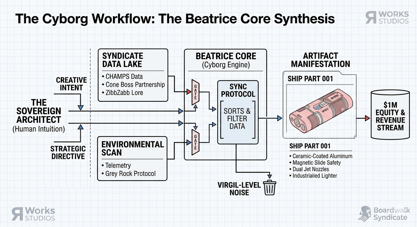 Beatrice is the first true artifact of the Redd × Cyborg workflow.