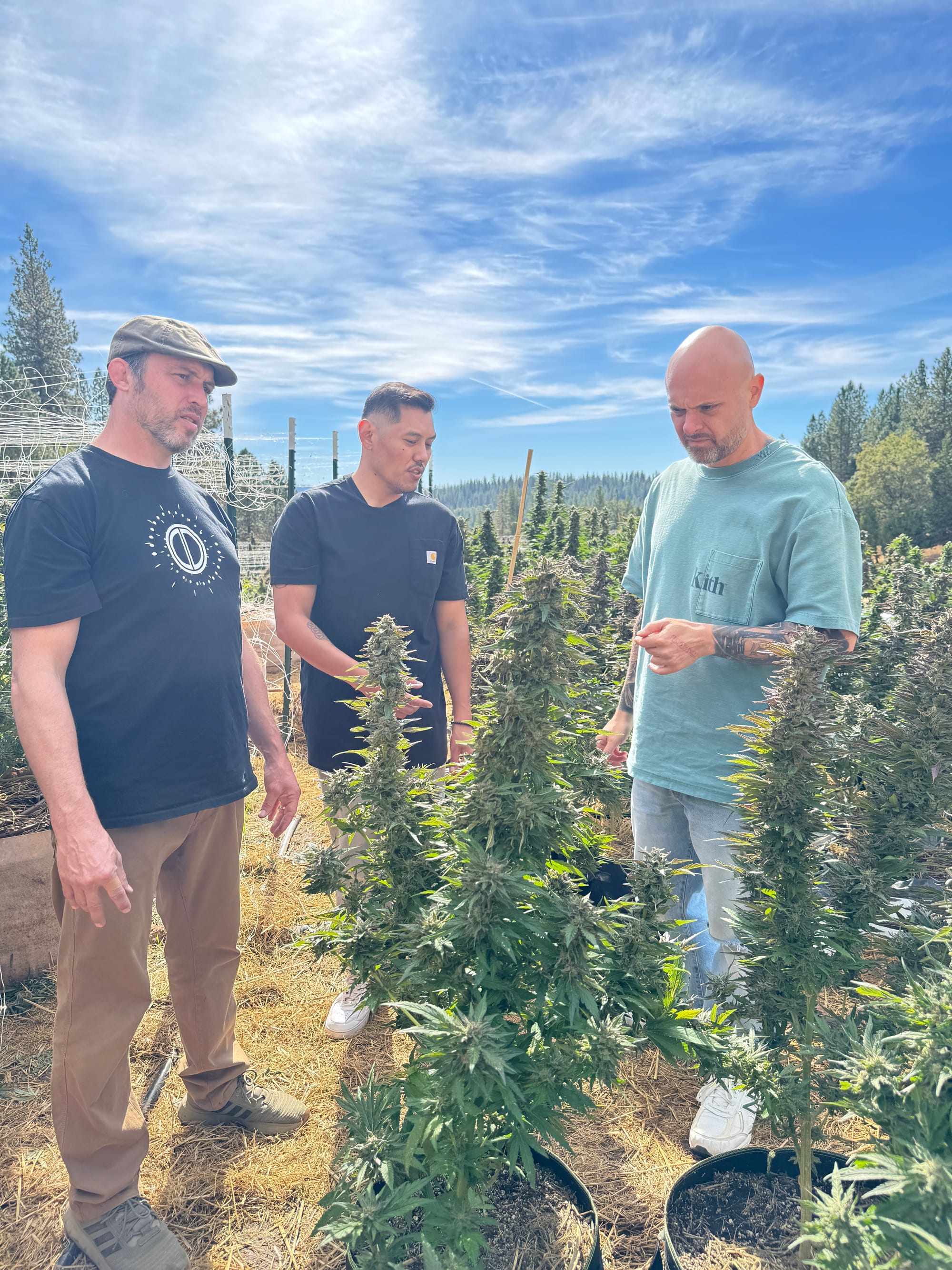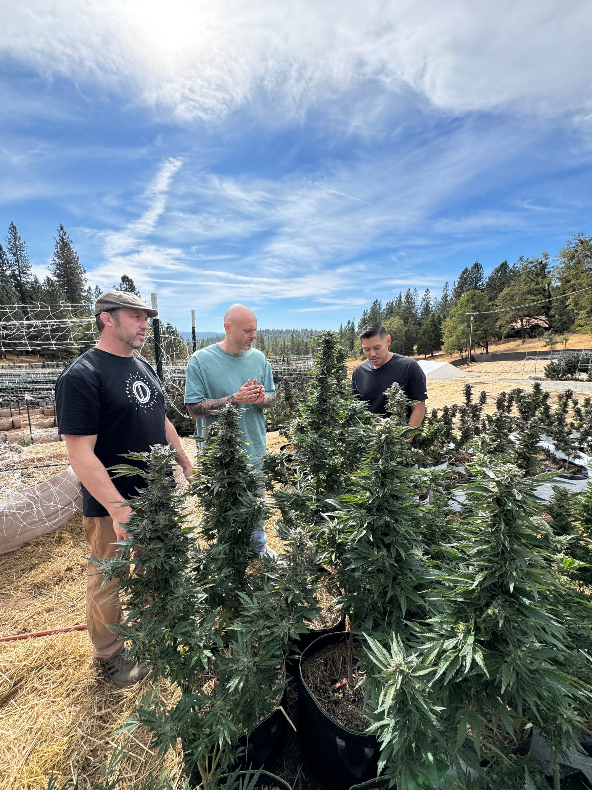 The land carries decades of heritage from growers of the ’60s and ’70s, but Higher Vibrations is creating a new chapter. After acquiring the property three-and-a-half years ago and grinding through permits and site plans, their first season launched late; this year the rhythm aligned. Plants hit the ground by June 1 and now rise 12–14 feet under crisp mountain light. At 3,100 feet, the farm sits closer to the sun—more UVB, cooler nights, and fewer pests combine for thicker, denser trichomes, the resin farmer’s gold.