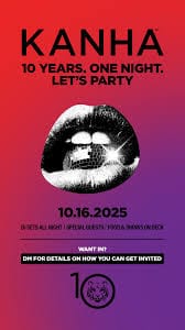 On Thursday, October 16, KANHA commemorated a decade of innovation, flavor, and bliss with a glittering anniversary bash at Kiss Kiss Bang Bang, the underground nightclub inside The Line Hotel in Los Angeles. The invite-only event gathered a who’s who of cannabis tastemakers, media insiders, and cultural influencers for an evening of music, community, and reflection on ten trailblazing years.